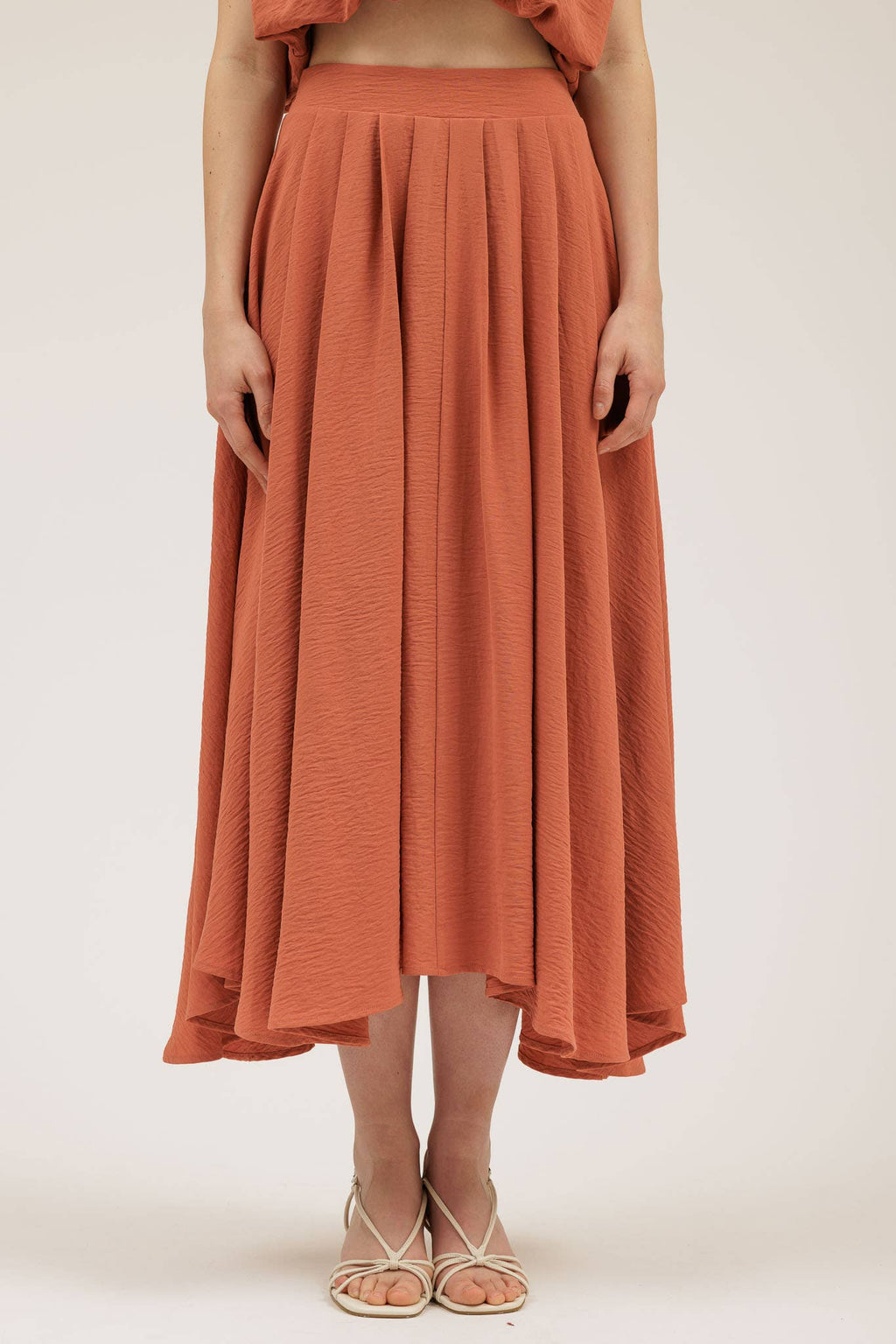 Boxy Pleated Midi Skirt | Apricot